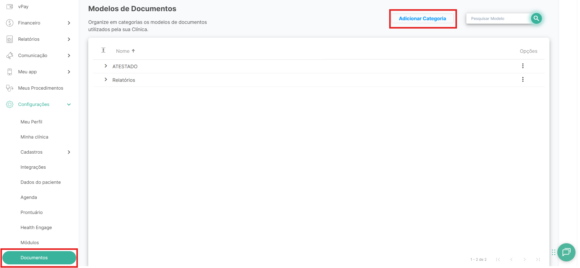 5. Para adicionar novos modelos de documentos à essa categoria, clique nos três pontinhos localizados na parte direita da tela, e depois em “Adicionar modelo”.