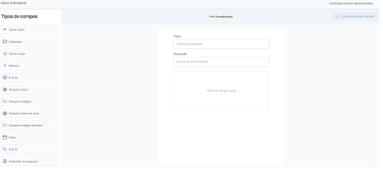 Dica bônus: É possível efetuar configurações de campos condicionais nos formulários. No canto superior direito, terá a opção “Condicionais em campos”
