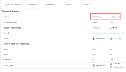 A configuração de visualização é bem interessante, pois permite acompanhar todos os formulários daquele mesmo modelo preenchidos lado a lado. Facilita a visualização das informações, ajuda na comparação das informações de um formulário anterior e deixa o prontuário do paciente mais organizado.