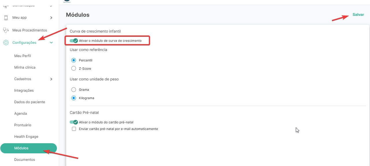 Basta ir até Configurações > Módulos > Curva de Crescimento.